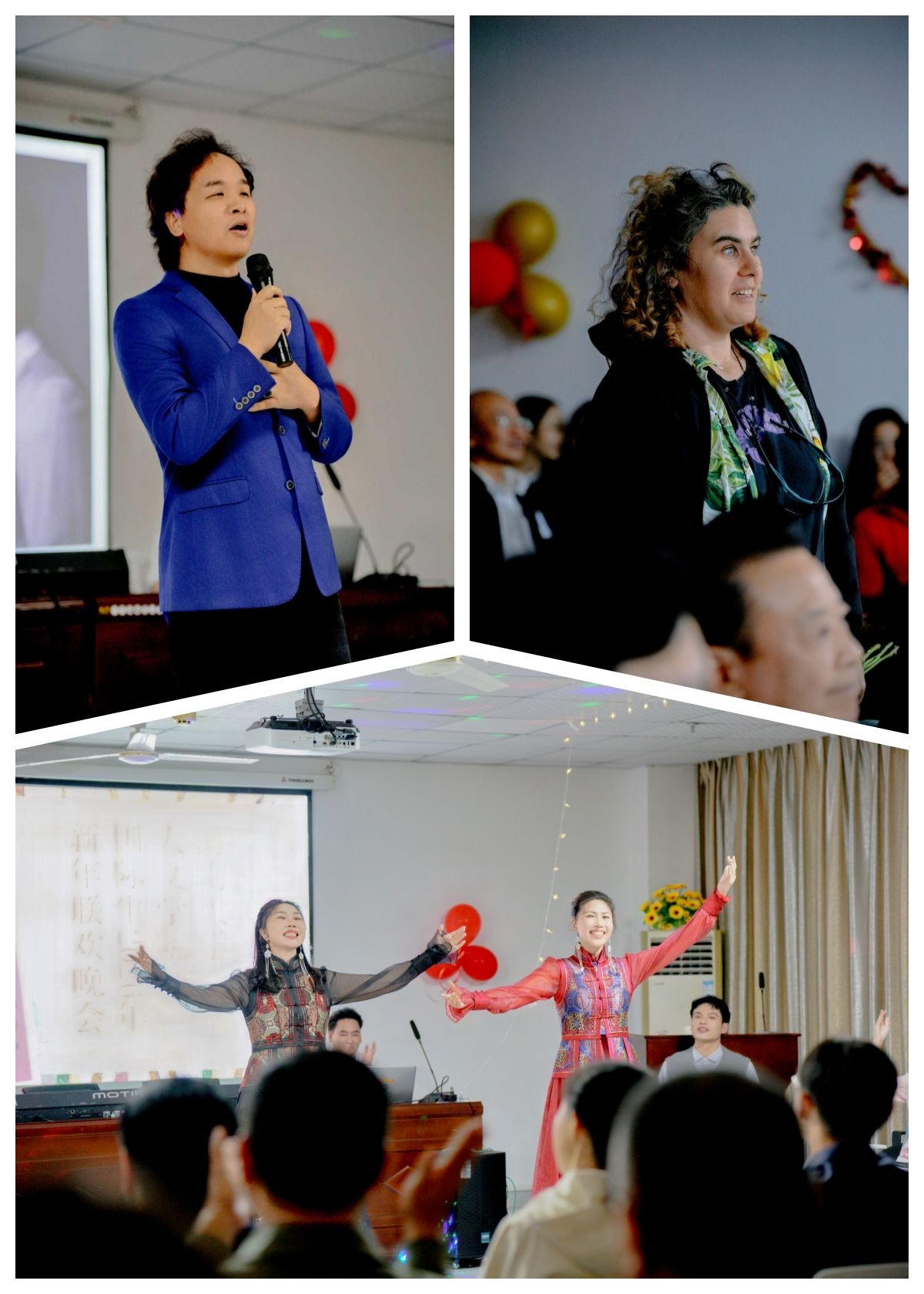 晚会现场大家一起游戏、唱歌、跳舞、合影,并互相赠送了鲜花、贺卡和各种美好的新年祝福,现场欢声笑语、其乐融融。