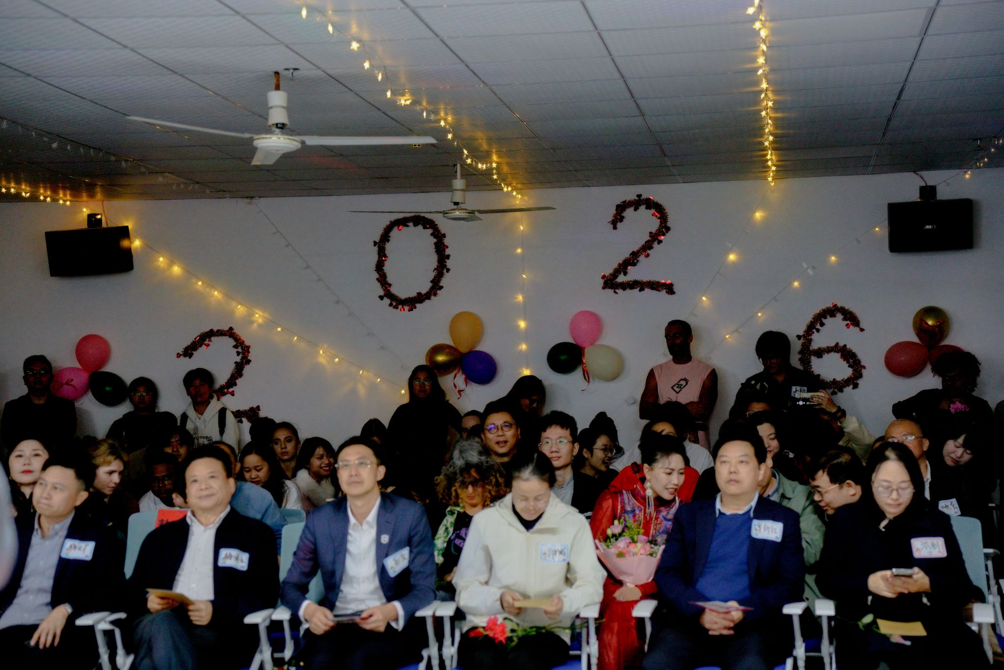 2026年1月11日晚,海南大学人文学院2026年国际学生“马踏新程”新年联欢会成功举办。省文联一级巡视员梅国云,海南大学党委常委、副校长岳文,国际教育学院院长肖艳玲,人文学院院长谭新红、党委书记杨元广等领导和全校200多位国际学生出席新年联欢会。