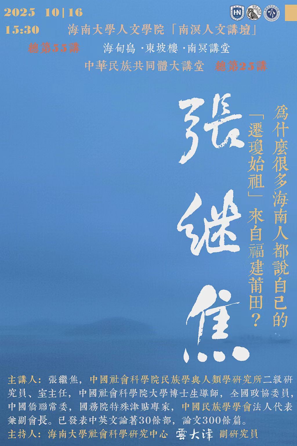 【学术预告】“南溟人文讲坛”第55讲 张继焦:为什么很多海南人都说自己的迁琼始祖来自福建莆田?