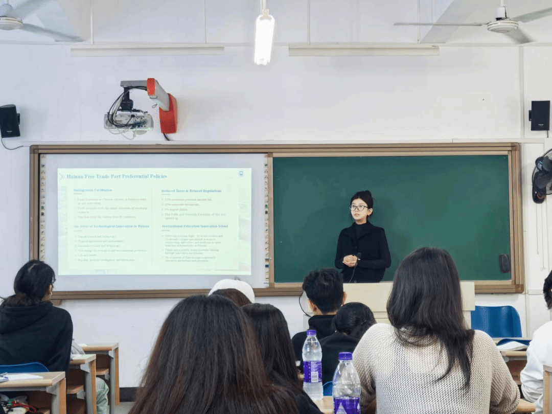11月12日上午,国际教育学院联合国际商学院和人文学院对语言班国际学生开展了招生宣讲。国际教育学院李春瑶老师为同学们带来了奖学金政策解读与海南大学生活指南。